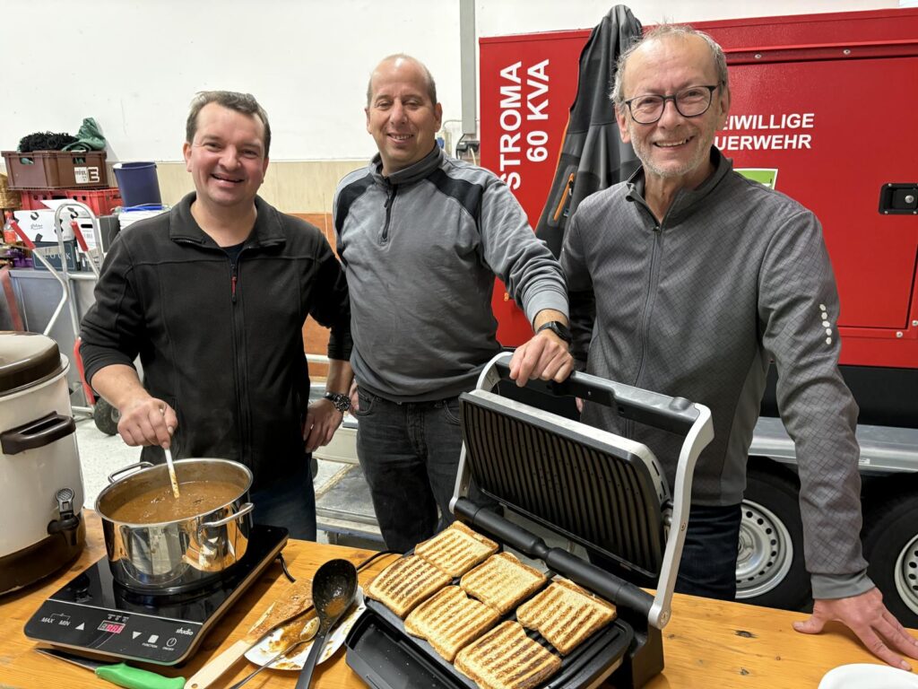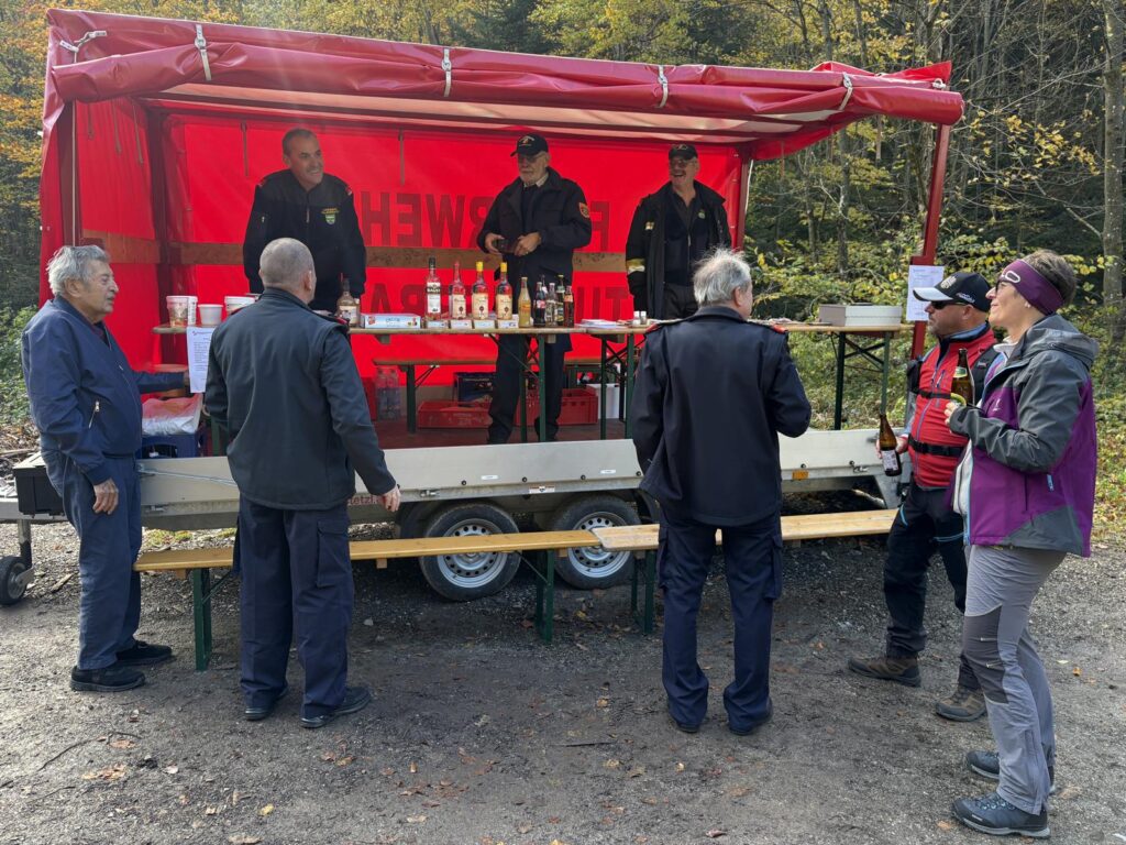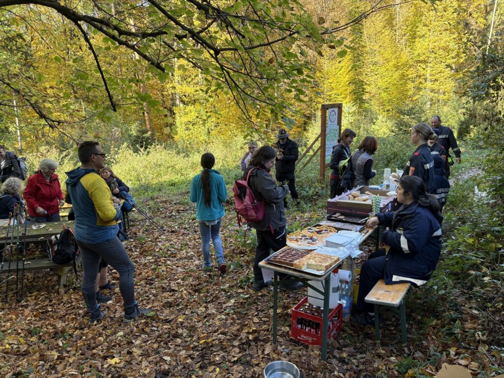 Im Feuerwehrhaus warteten anschließend geräucherter Saibling, Gulasch, Würstel und eine große Auswahl an hausgemachten Mehlspeisen auf die hungrigen Wanderer.