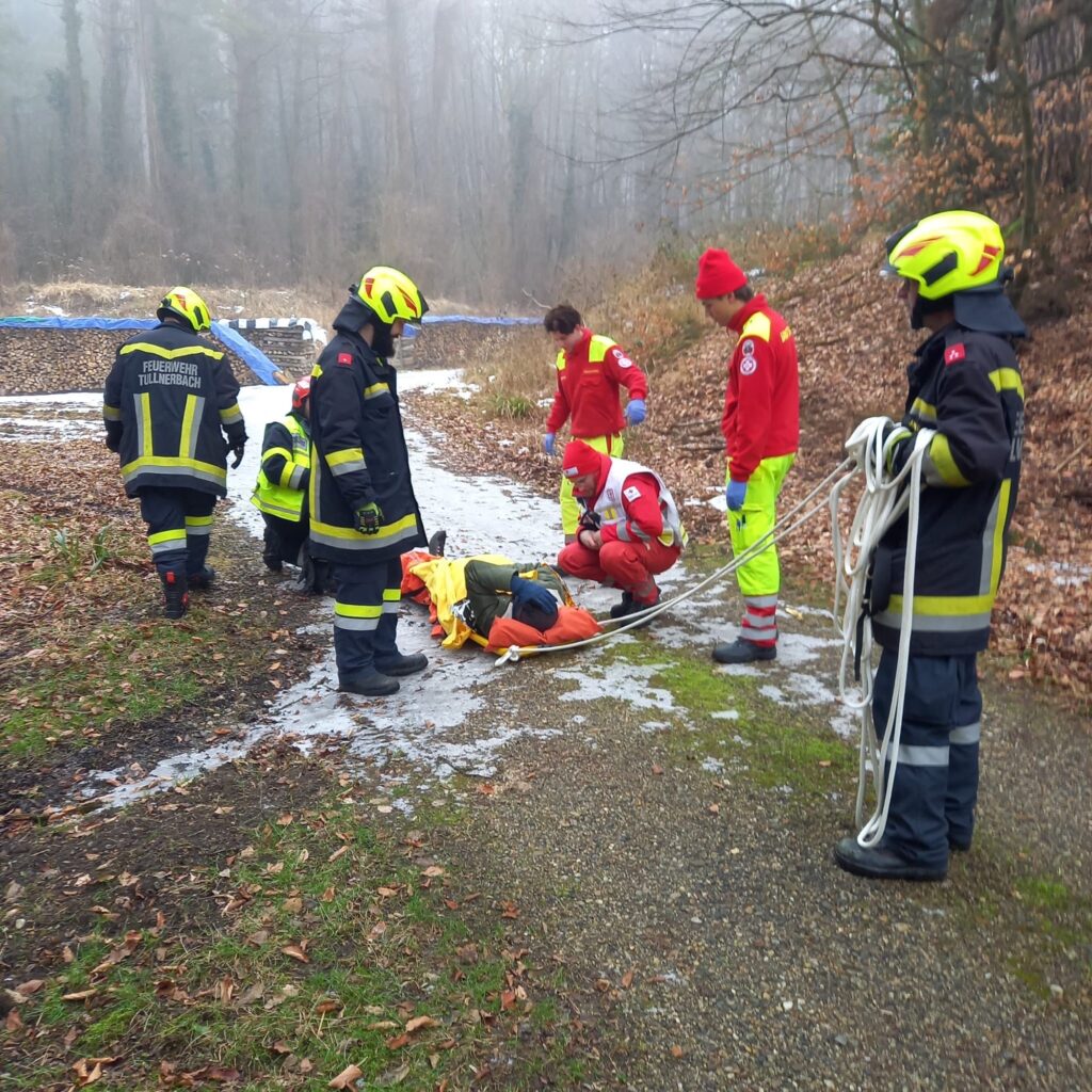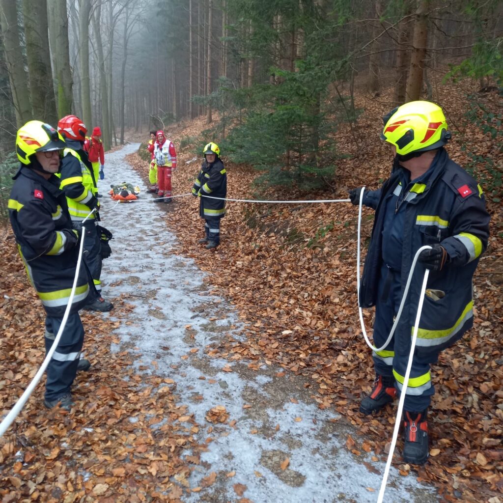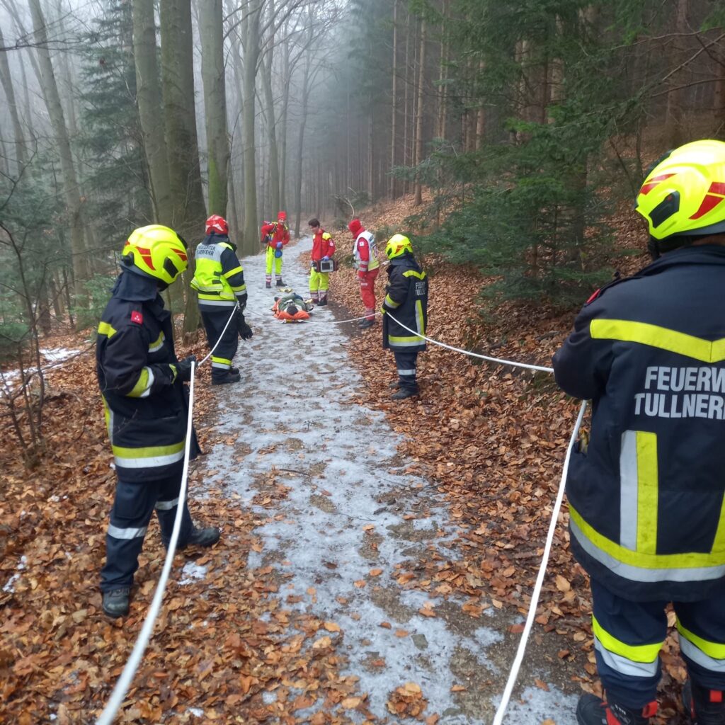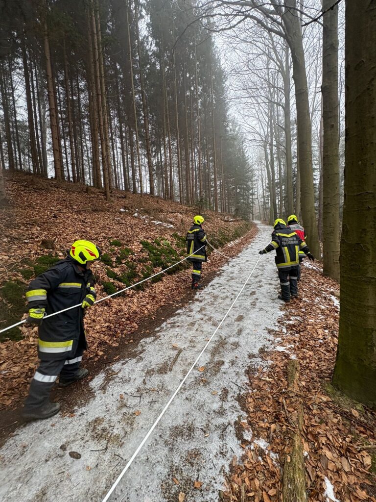 Die Freiwillige Feuerwehr Tullnerbach wurde zu einer verletzten Person im Waldgebiet alarmiert. Eine Person war auf einer vereisten Stelle gestürzt und konnte den Weg aus eigener Kraft nicht mehr fortsetzen.
