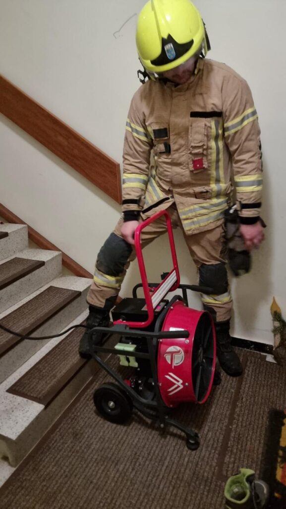 Im Anschluss wurde die Wohnung mithilfe eines Druckbelüfters entraucht. Eine abschließende Kontrolle stellte sicher, dass keine weiteren Glutnester vorhanden waren. Die Wohnung ist nach dem Brand bis auf weiteres unbewohnbar.