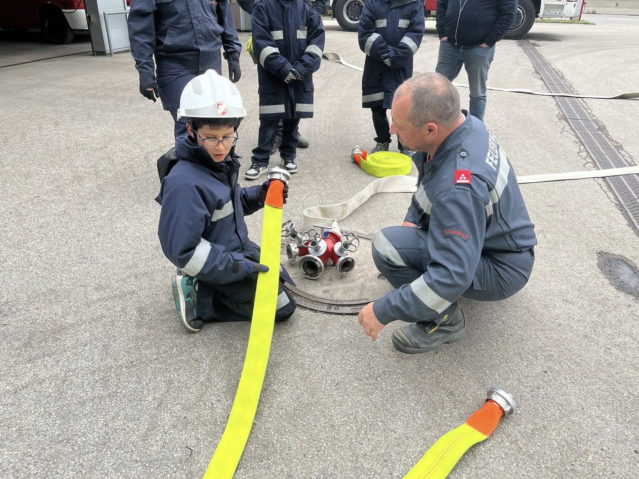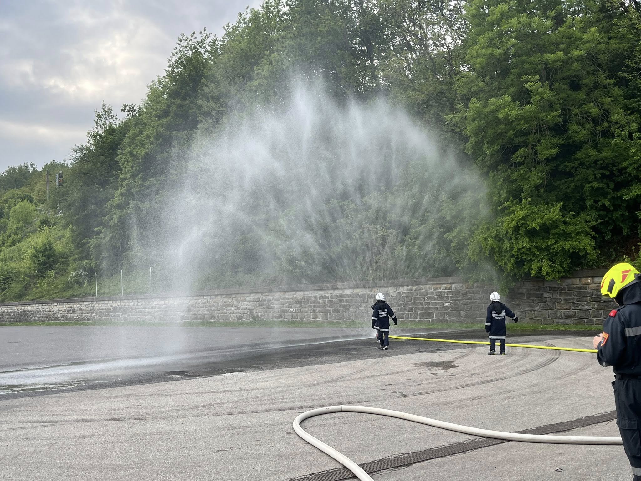 Abgerundet wurde die Ausbildung mit der praktischen Demonstration des Aufbaus eines Wasserwerfers sowie eines Hydroschildes.