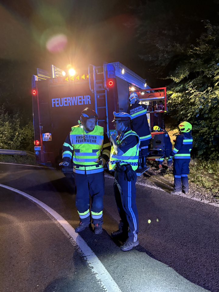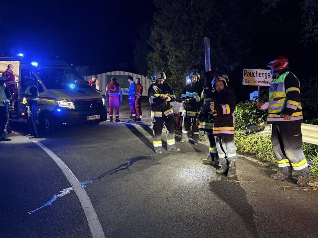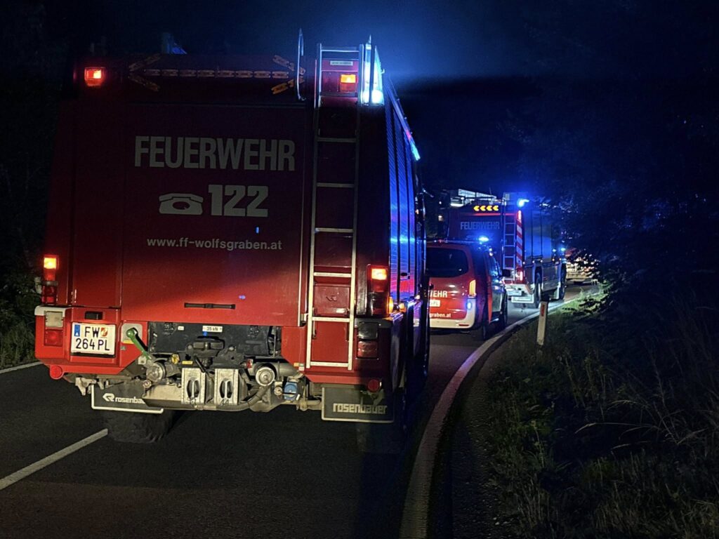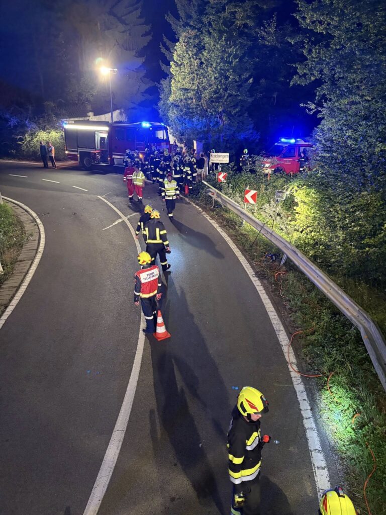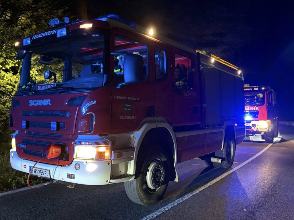 Am Sonntag, den 31.08.2025, wurden die Freiwilligen Feuerwehren Tullnerbach, Irenental und Wolfsgraben um 20:45 Uhr mit dem Einsatzstichwort „PKW in 5 m Tiefe im Bachbett“ auf die L123 bei der ersten Rauchengern-Kurve alarmiert.